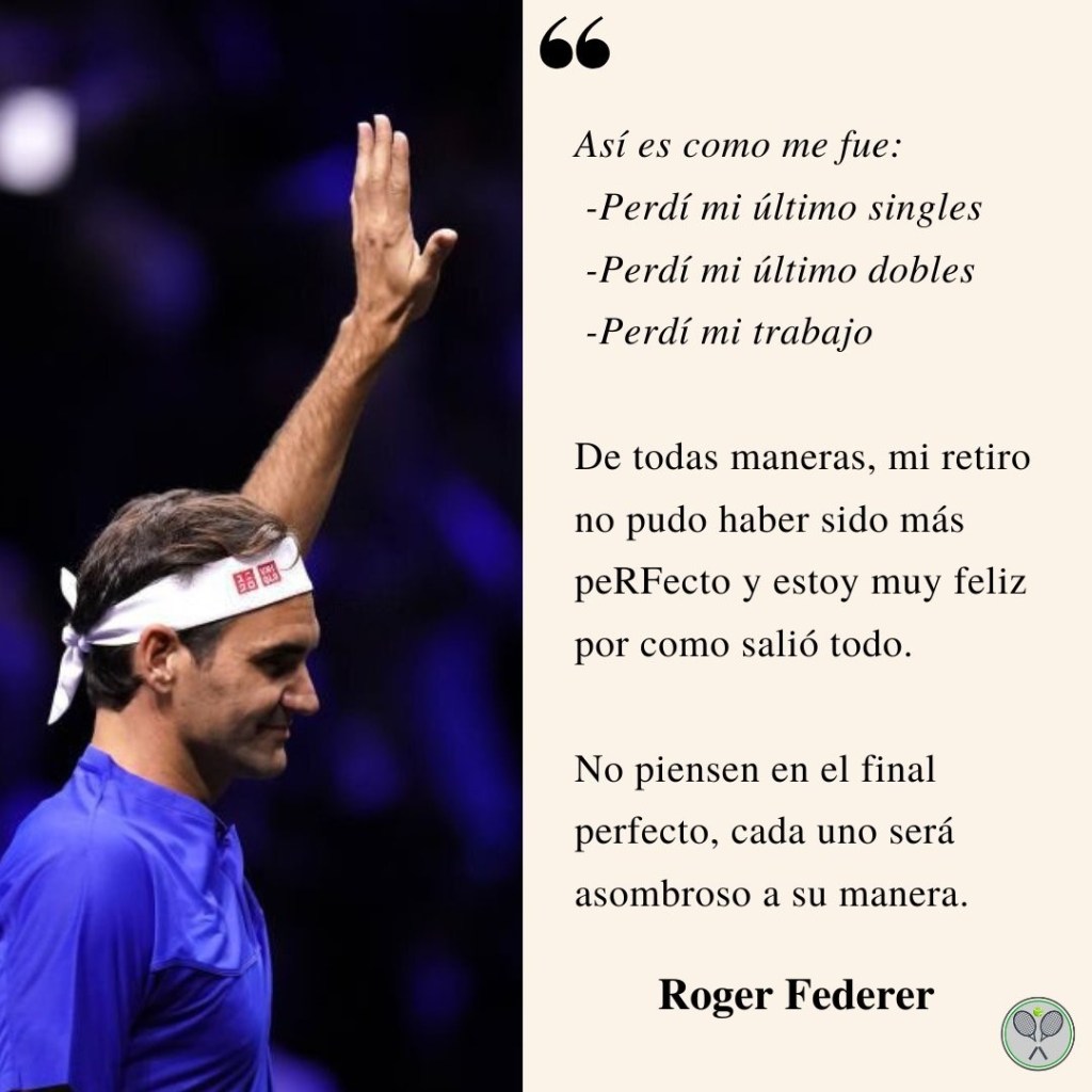 Y, finalmente, vino la partida de un grande. La gran paradoja es que Roger se despide perdiendo sus últimos dos partidos, incluyendo el juego de dobles que especialmente pidió compartir con Rafael Nadal en la Laver Cup 2022, pero igual lo saborea vía Twitter con su sutil buen humor, como algo peRFecto. No le hace menos hombre perder su último match. No requiere el supuesto “final feliz” o el “final ganador” para sellar su carrera. Se puede perdiendo y nada pasa, siempre quedará lo positivo, nos dice. Además, él se ganó el cariño, respeto y amor de quienes lo vimos jugar. Espero verte en algún momento en algún tour de exhibición aquí en Perú querido Roger.