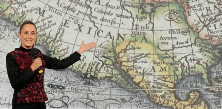 - Dijo que renombraría al Golfo de México como Golfo de América y lo ha hecho, aunque solo sobre el zócalo continental de los Estados Unidos. La presidenta mexicana Claudia Sheimbaun le respondió sarcásticamente indicando recíprocamente entonces «A Estados Unidos vamos a llamarle América Mexican (…) se oye bonito» tal como figuraban en mapas anteriores. Afirmó que el nombre del Golfo por razones históricas no se puede modificar.